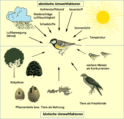 Faktoren, die Wechselwirkungen zwischen verschiedenen Arten, oder zwischen Individuen der eigenen Art beschreiben können. |