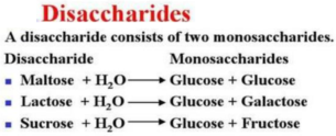 Entstehen durch die Kondensationsreaktion zwischen zwei Monosacchariden. Z.B. Saccharose, Maltose, Lactose. |