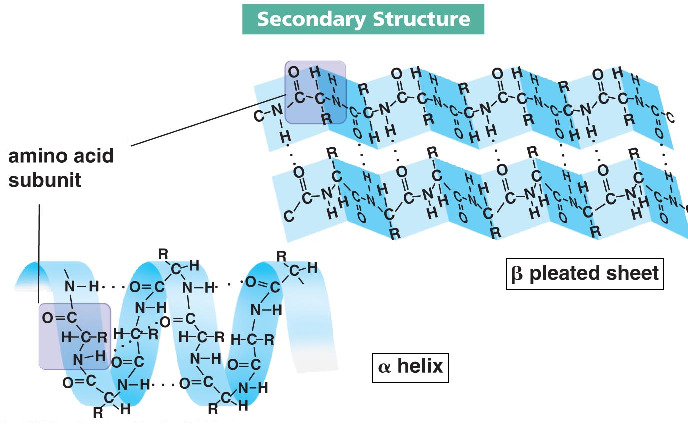 Lokale, regelmäßige Faltung der Proteinstruktur, zum Beispiel eine -Helix oder ein -Faltblatt; bedingt durch die Ausbildung von Wasserstoffbrücken. (Gegensatz zu Primärstruktur, Tertiärstruktur, Quartärstruktur) |