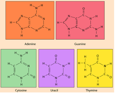 Stickstoffbasen bestehen aus einem Ringsystem aus Kohlenstoff- und Stickstoffatomen, das basische Eigenschaften hat. Sie sind Bausteine der Nucleotide. |