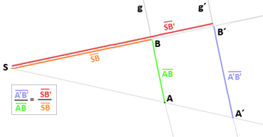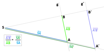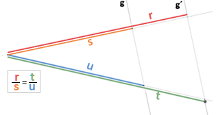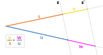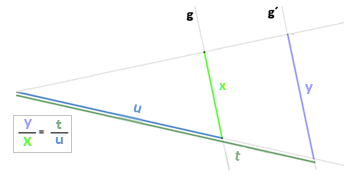 "Die Relation der lange Abschnitte zu der kleine Abschnitt auf einer Linie ist gleichdie Relation der lange Abschnitte zu der kleine Abschnitt auf die andere Linie". | |||||
