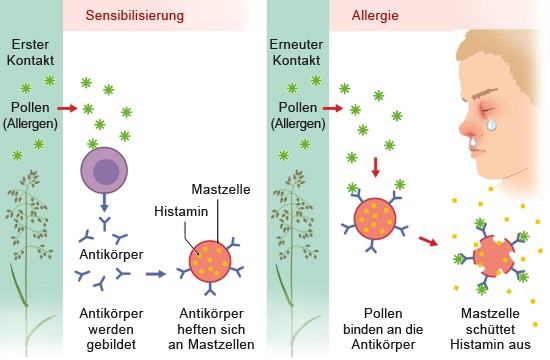 Übermäßige Immunreaktion auf ein normalerweise harmlose Stoffe (Antigen). |