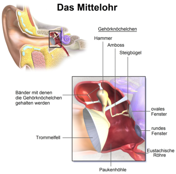 Mittleres der drei Gehörknöchelchen, das die Bewegungen des Trommelfells auf das ovale Fenster des Innenohrs überträgt. |