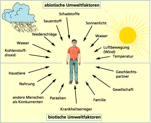 Faktoren, die Wechselwirkungen zwischen verschiedenen Arten, oder zwischen Individuen der eigenen Art beschreiben können. |