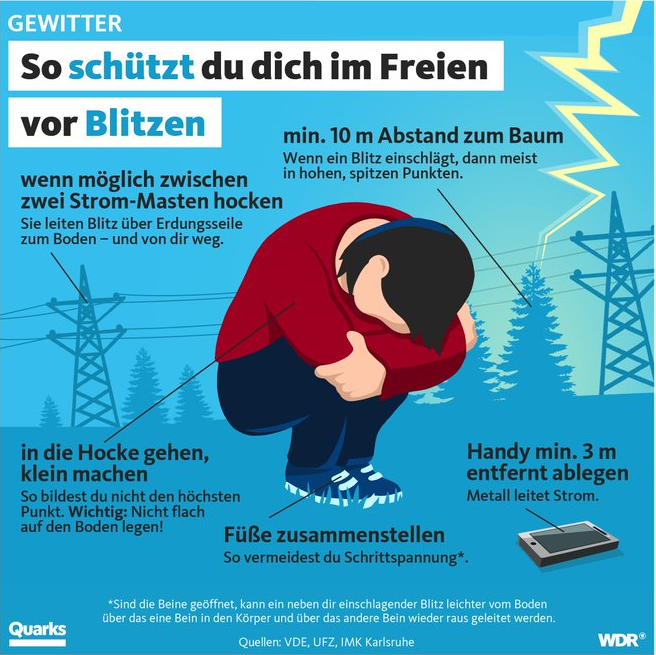Beim Blitz erfolgt ein Ladungsausgleich zwischen geladene Wolke und Erde. |