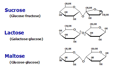 Entstehen durch die Kondensationsreaktion zwischen zwei Monosacchariden. Z.B. Saccharose, Maltose, Lactose. |