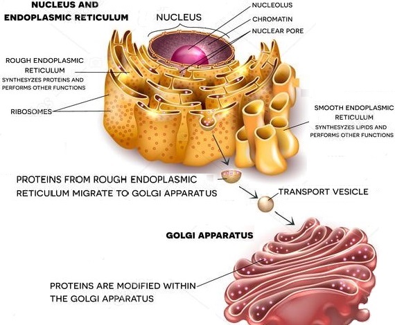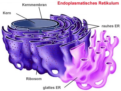 Ist ein stark gegliedertes Membransystem in allen tierischen und pflanzlichen Zellen und befindet sich an der Kernmembran des Zellkerns. Man unterscheidet: |