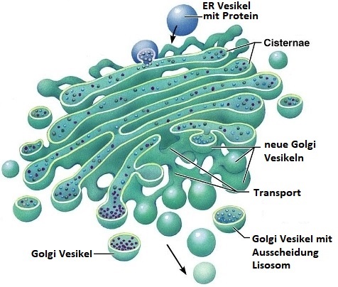 Beschreibung | Der Golgi-Apparat ist ein Zellorganellen in unmittelbarer Nähe zum Zellkern und für die Anpassung von Proteinen veranwortlich. |