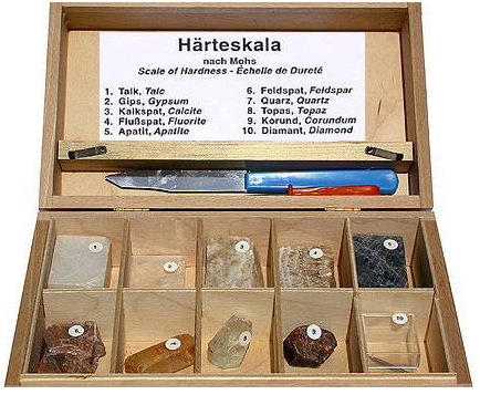 Die Ritzhärte wurde von einem Mineralogen Namens Friedrich Mohs vor etwa 200 Jahren erarbeitet und eingeführt. Das ist auch der Grund, warum diese Härte ebenfalls als Mohshärte bekannt ist. Sie zählt zu den ältesten Härteprüfverfahren und wird auch heute noch eingesetzt. Dabei geht es um den mechanischen Widerstand eines Minerals gegen das Eindringen beim Ritzen mit einem scharfkantigen Gegenstand. Im Grunde werden also verschiedene Materialien miteinander verglichen und eine Art „Rangliste“ erstellt. Zur einfachen Einteilung besteht diese Liste nur aus 10 „Rängen“ und wird Mohs Härteskala genannt. Als weichstes Prüfmineral gilt Talk mit dem Wert 1. Das Härteste ist Diamant mit dem Wert 10. Zwischen diesen beiden Stoffen sind alle anderen Materialien angeordnet. |