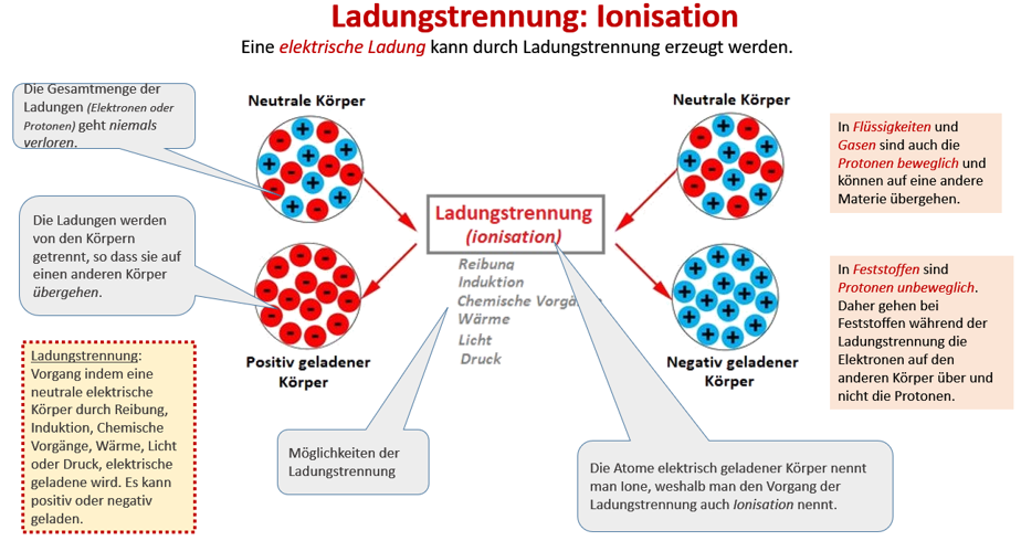 Ladungen können durch Berühren oder Reiben getrennt werden.