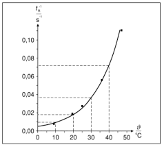 Zusammenhang zwischen Reaktionsgeschwindigkeit und Temperatur. Eine Temperatur erhöhung um 10° im Allgemein zu einer Verdopplung bis Dreifache der Reaktionsgeschwindigkeit führt. |