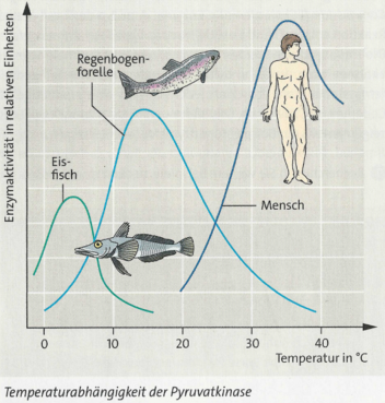 Änderung der Temperatur beeinflusst die Enzymaktivität, nicht nur ihre Reaktionsgeschwindigkeit, sondern auch ihre Konformation, also ihre räumliche Gestallt.