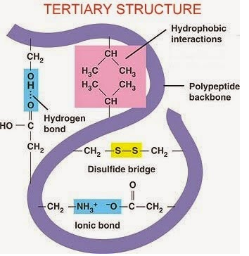 Bezüglich eines Proteins die relative Lage aller Atome des Moleküls im dreidimensionalen Raum; die übergeordnete räumliche Struktur des Proteins. (Gegensatz zu Primärstruktur, Secondärstruktur, Quartärstruktur) |