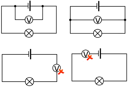 Spannungsmesser, auch Voltmeter genannt, sind Messgeräte, mit denen man die elektrische Spannung an einem elektrischen Bauteil messen kann. Spannungsmesser sind immer parallel zu dem elektrischen Gerät oder Bauteil zu schalten, an dem die Spannung gemessen werden soll. |