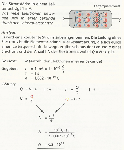 Die Stromstärke in einem Leiter beträgt 1 mA. Wie viele Elektronen bewegen sich in einer Sekunde durch den Leiterquerschnitt?